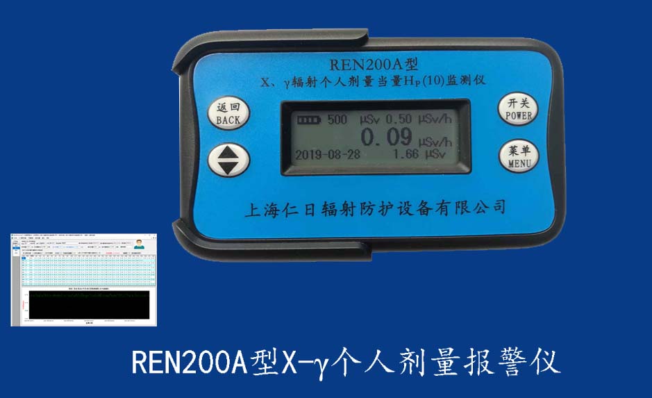 REN200型X、γ個人劑量報警儀(又叫X、γ輻射個人劑量當量HP(10)監(jiān)測儀)內置高靈敏度蓋格計數管為探測器,主要用來監(jiān)測各種放射性工作場所的X、γ以及硬β射線的輻射,具有響應快,測量范圍寬的特點。能顯示工作場所的劑量當量率和累積劑量,更換電池時,日期及累積數據能永久保存。可選配RenRiPersonal個人劑量管理軟件,該軟件可存儲多個人的歷史數據,能記錄日累積、月累積、年累積、輻照時長、計算平均劑量率、扣除或不扣除本底輻射,且以文字和圖譜的方式展現數據。廣泛應用于核電站、加速器、鋼鐵、化工、同位素應用、醫(yī)院、工業X、γ無損探傷、放射醫(yī)療、鈷源治療、γ輻照、放射性實驗室、核設施周圍環(huán)境監(jiān)測